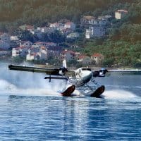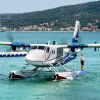- Die Twin Otter auf der Adria kurz vor dem Abheben. Es geht sanft und fast geräuschlos in die Luft